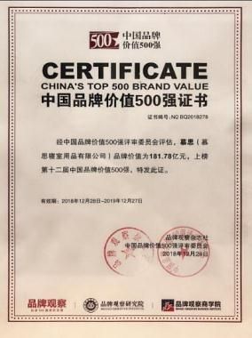 今年,慕思以181.78亿元荣登“第十二届中国品牌价值500强”榜单278名。成为500强,这已经不是慕思的第一次: