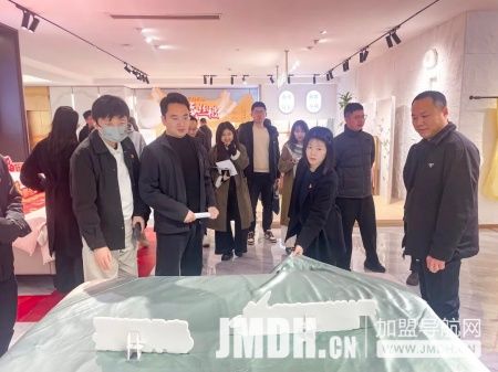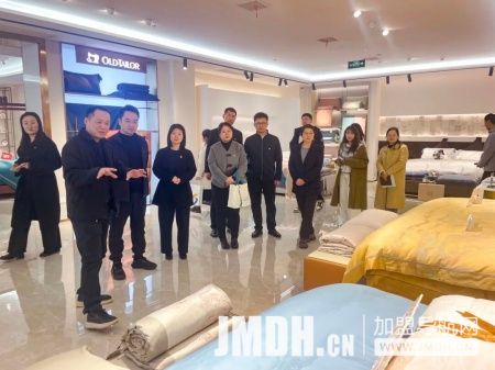 志愿服务团队先后走进老裁缝家纺的品牌展厅与智能化生产车间。